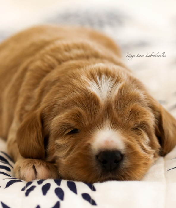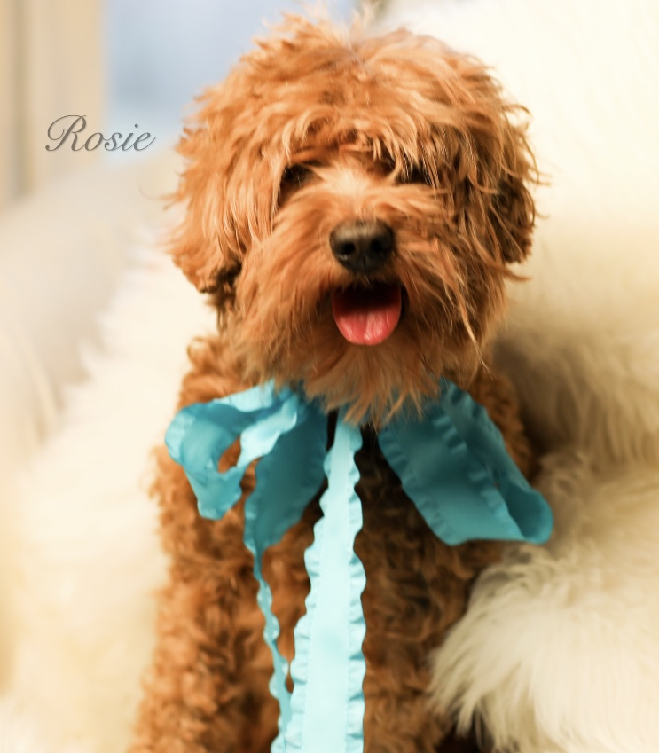 Rosie is our smallest Doodle. She is daring, inquisitive and loves attention. Her coat is a beautiful red fleece.