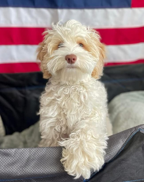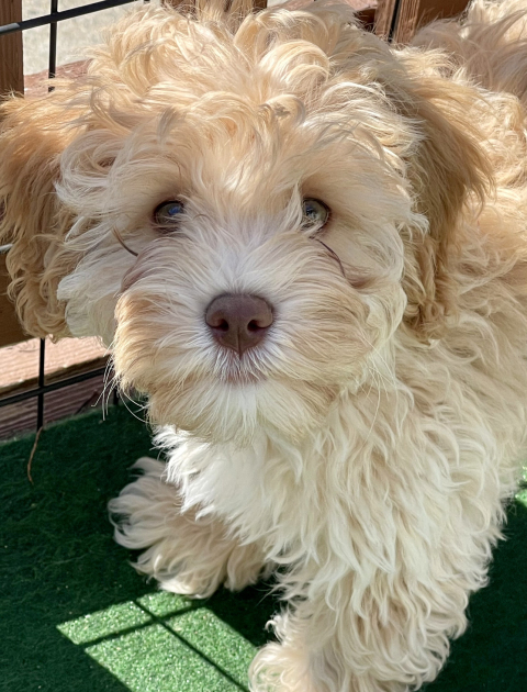 Gem Doodles Soleil is a big personality in a tiny body. She is apricot with stunning green eyes. She will make a great mama when her time comes.