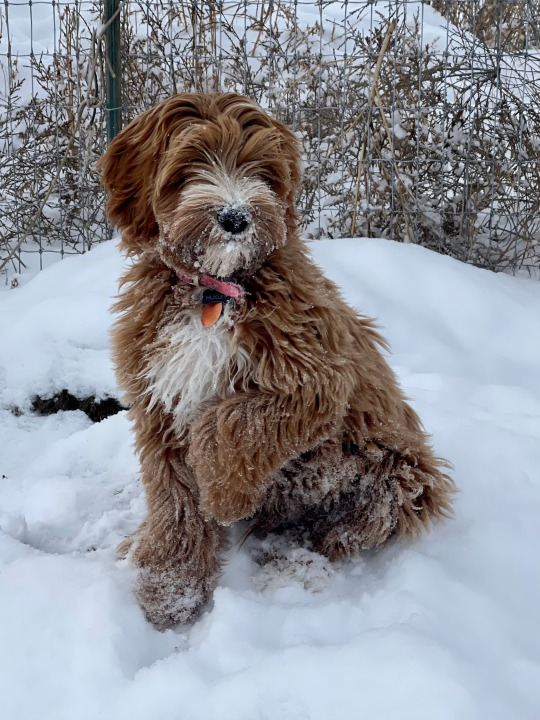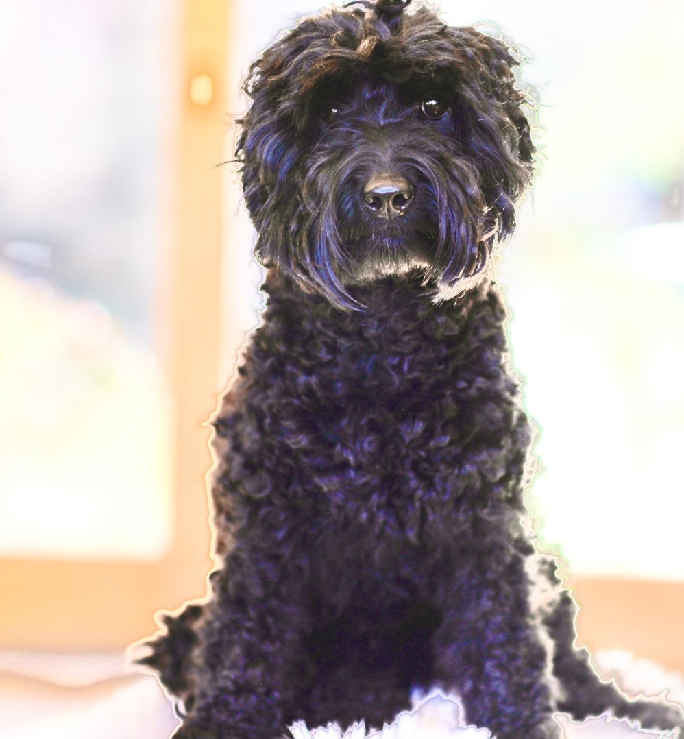 Rosie is our smallest Doodle. She is daring, inquisitive and loves attention. Her coat is a beautiful red fleece.